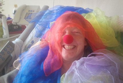 Mit Leidenschaft und Hingabe bin ich als Clownin im Einsatz: Im Kinderkrankenhaus, in der Unfallklinik, im Seniorenheim mit dement erkrankten Menschen und im Kinderhospiz.